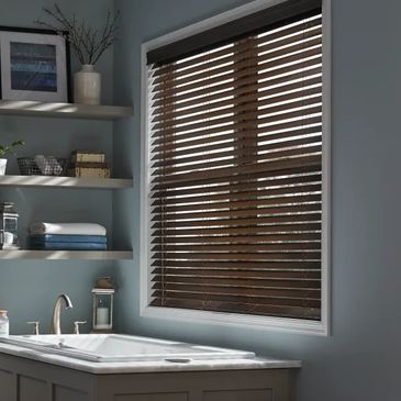Natural-hued wood grains and solid colors give faux wooden blinds the look of real wood with the benefit of vinyl. Faux wood will not crack, chip or fade from sun damage.