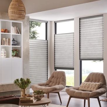 Honeycomb shades come in multiple cell styles with a wide range or fabric, textures and light control options with a bonus of being the most insulating. Keep your room cool in summer and warm in the winter!