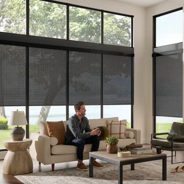 Roller Shades offer a all-around solution that can soften natural light, block it out or just simply roll them up. Made custom to your space!